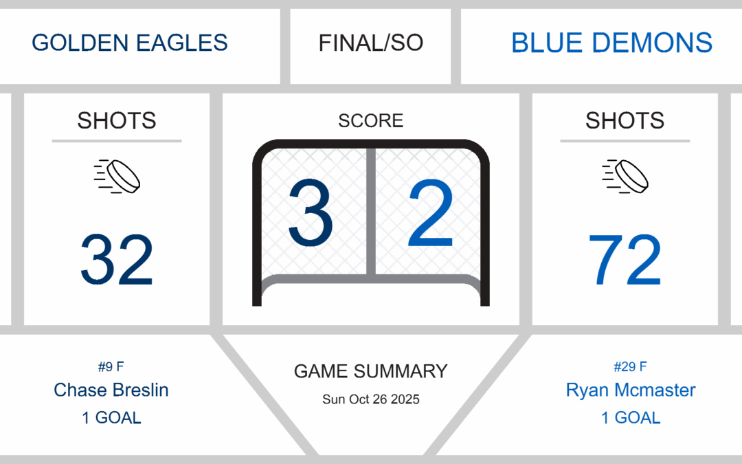 While the Blue Demons had a whopping 72 shots on goal, the Golden Eagles’ goalie, Jake Buttice, proved to be a formidable obstacle, making an impressive 70 saves. The Blue Demons’ goalie, Kyle Tyszkiewicz, also had a commendable performance with 29 saves out of 32 shots.
